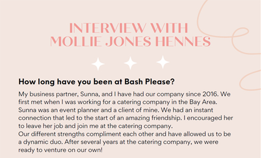 My business partner, Sunna, and I have had our company since 2016. Wefirst met when I was working for a catering company in the Bay Area.Sunna was an event planner and a client of mine.We had an instantconnection that led to the start of an amazing friendship.